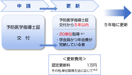 | 必修単位 | 予防医学指導士養成研修会受講【年1回開催】 ※受講料 そのつど事務局まで、お問い合わせください。 |